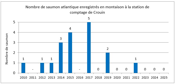 Précisons que ces chiffres ne sont pas exhaustifs dans la mesure ou de fortes crues ont pu rendre le barrage de Crouin franchissable par les clapets et le seuil donc sans nécessairement passer par la passe à poissons.
