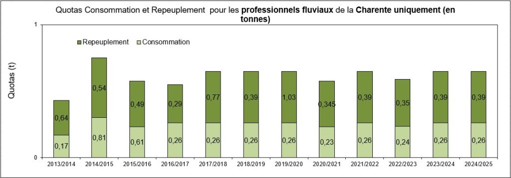 Ci-dessous les quotas Consommation et Repeuplement sur la Charente uniquement.